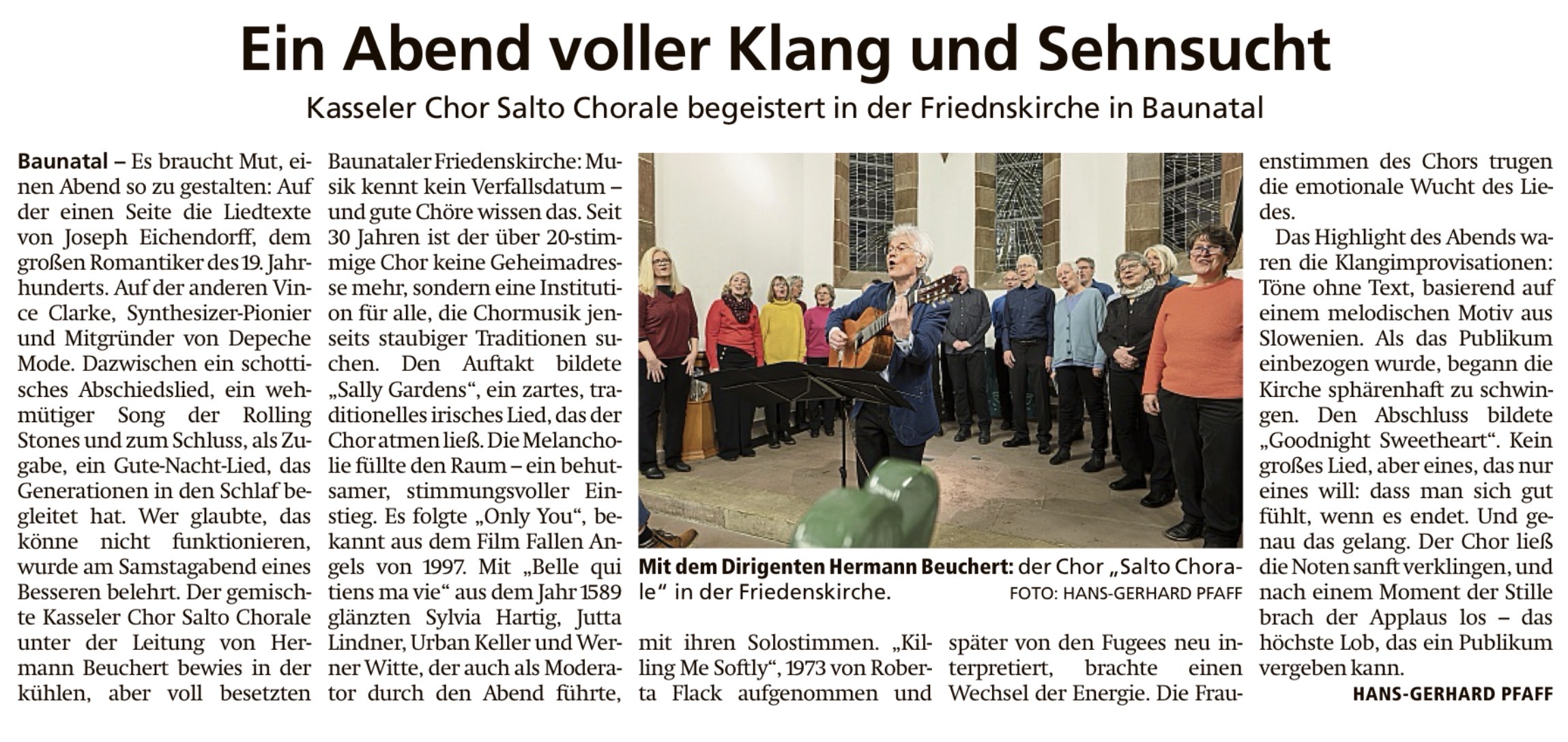 Über unseren Konzerte im Februar 2026 berichtete die HNA ("Ein Abend voller Klang und Sehnsucht").